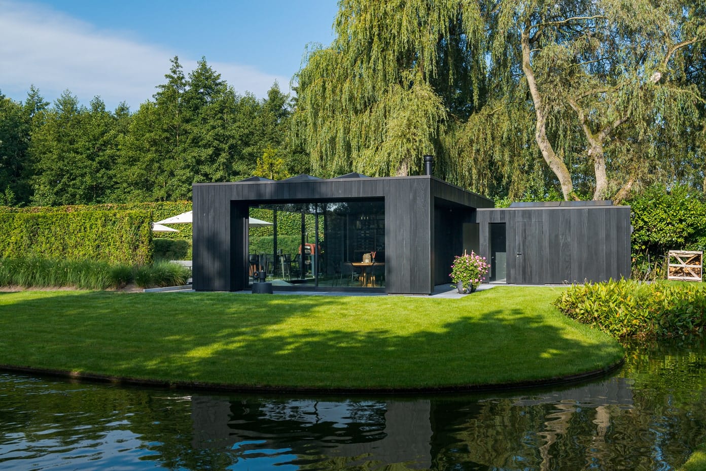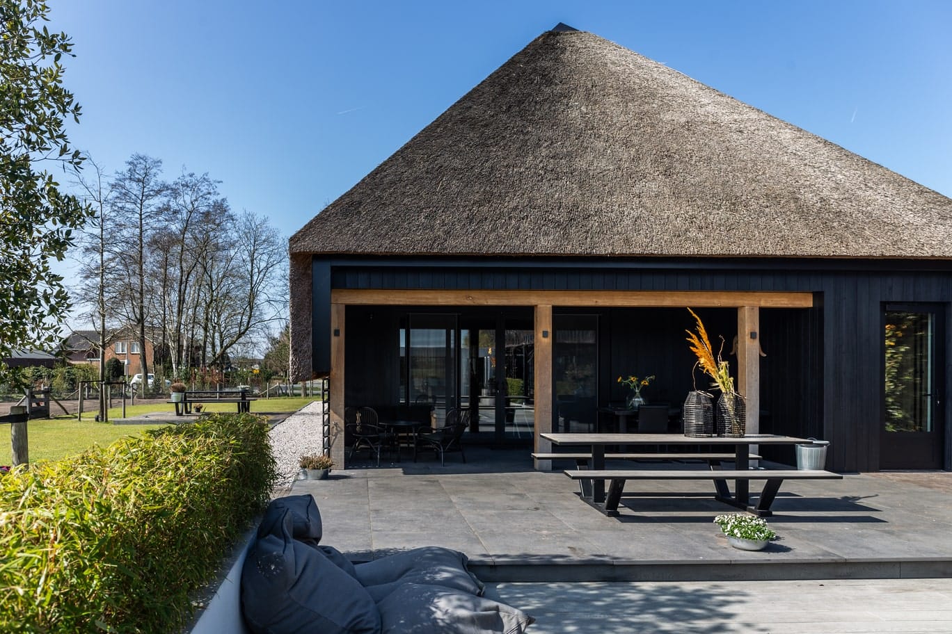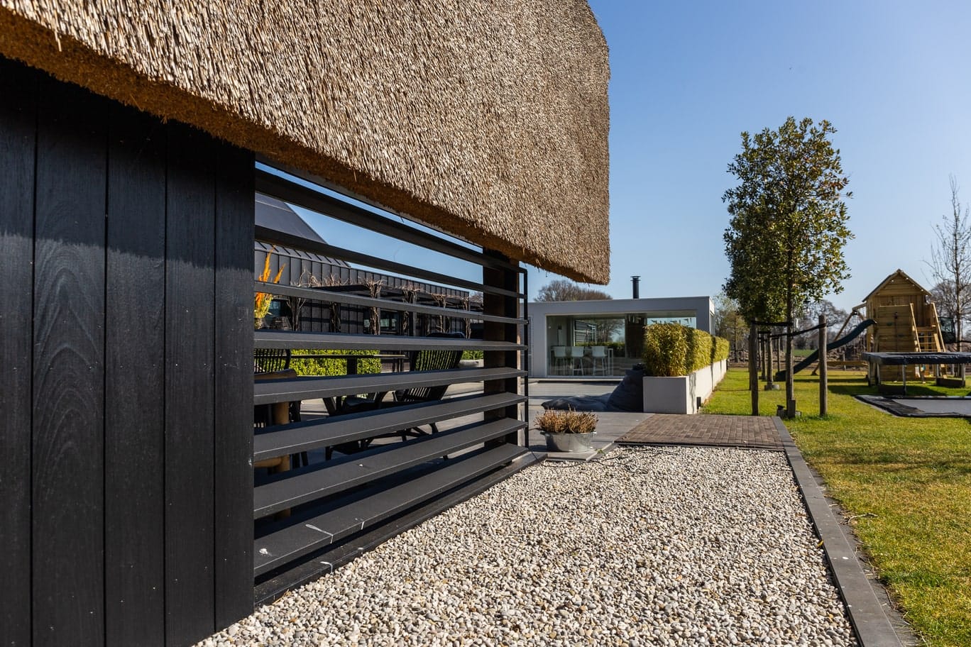 Thermisch gemodificeerde plank met channelsiding profiel. Perfect voor een strakke houten gevelafwerking. Dankzij de mes en groef sluiten de planken netjes op elkaar aan. Tussen de planken blijft een smalle lijn zichtbaar die de strakke look accentueert.